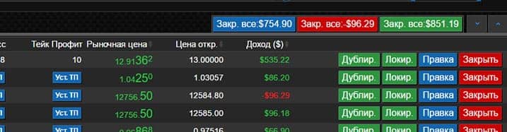 • Режим торговли в 1 клик